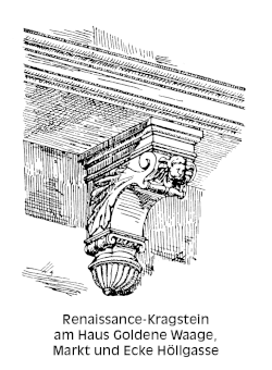 Finally, there was a wall dormer on the steeply sloping gable roof, typical of this type of houses covered with slate. The gable facing the market was curved in the typical renaissance fashion, which can also be seen on the stylistically related Salzhaus.