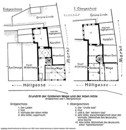 Changes to the house, such as the many doors which were walled-up over the centuries, the cellars, along with uncertainty as to the ownership gave rise to many myths and rumours, so people believed the Goldene Waage to be haunted.[5]