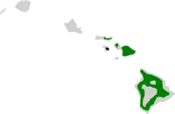 It is found on the Big Island, Maui, and Molokaʻi in Hawaii.[6] It formerly occurred on Lānaʻi where it was last seen in 1976.[6] It is one of the most common honeycreepers, inhabiting all types of habitat, dry māmane forests to mesic and wet forests, on the islands at elevations from sea level to 8,000 feet (2,400 m). On Maui they have also been successful in forests of introduced pines, cypresses and firs. Of all the forest birds native to Hawaii, the Hawaiʻi ʻamakihi has been affected the least by habitat changes. It is suspected that it is evolving resistance to diseases such as avian malaria. Along with the ʻApapane, it is one of the two Hawaiian honeycreepers listed by the IUCN as being of least concern.