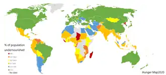 Forty-five million Iranians face inadequate nutrition according to Iranian officials.[6] Kohgiloyeh and Boyerahmad, Sistan-Baluchistan, Hormozgan, Kerman and Khuzestan as provinces that face malnutrition or food insecurity.[6]