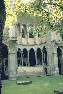 Heisterbach, which had large possessions and drew revenues from many neighbouring towns, remained one of the most flourishing Cistercian monasteries until its suppression in 1803. The library and the archives were given to the city of Düsseldorf; the monastery and the church were sold and torn down in 1809, and only the apse with the ruins of the choir remains.[1]