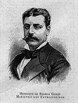 Henrique de Barros Gomes (Lisbon, 14 September 1843 – Alcanhões, Santarém, 15 November 1898), was a Portuguese politician, member of the Progressive Party, who assumed the functions of director of the Bank of Portugal, Minister of various Ministries during Regeneration Era politics and member of the Geographic Society of Lisbon, as well as diverse national and international awards of merit. He was noted for his role during the colonial crisis associated with British Ultimatum.