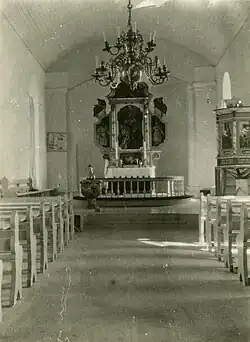 The earliest existing historical records of the church date back to the year 1432, but the church was originally constructed during the second half of the 1100s. The church has a rectangular nave, a tower to the west, and a narrower choir with a semicircular apse. The choir and apse have a lower roof line than the nave. Research on the building has shown that the choir part is the oldest part of the existing building with the apse and nave built a little later. Originally, the current choir was the stone nave that was attached to a wooden building. The wood building was later torn down and the stone building was expanded. Over the years, the church fell into disrepair. During the early 1400s, the western wall of the church was taken down and the stone nave was shortened by about 4 metres (13 ft) and then a new wall was built. In 1879, the church was enlarged by doubling the length the nave (adding about 10 metres (33 ft) to the nave) and then a new west tower was added on the end of the new nave. In the 1960s, the church was thoroughly renovated by the architect John Egil Tverdahl.[3][4]