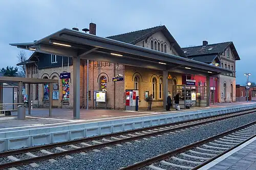 Herzberg (Harz) station is a railway station in the municipality of Herzberg am Harz, located in the Göttingen district in Lower Saxony, Germany.