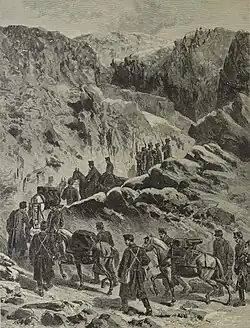 Advance of Austro-Hungarian artillerymen through mountain terrain (Neue Illustrirte Zeitung, 1882)