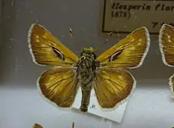 Hesperia florinda is a butterfly in the family Hesperiidae (Hesperiinae). It is found in the East Palearctic in Transbaikalia to Korea, Amur, Ussuri and Japan. The larva feeds on Carex. There is a single broods. The egg hibernates.[2] Hesperia florinda was previously a subspecies of Hesperia comma.