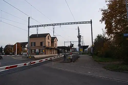Hettlingen is a railway station in the municipality of Hettlingen in the canton of Zurich, Switzerland. It is located on the Rheinfall line, within fare zone 160 of the Zürcher Verkehrsverbund (ZVV).[2]