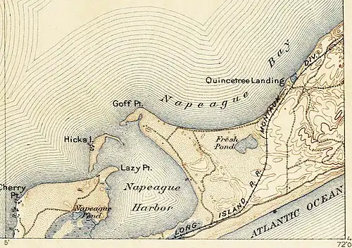 3. ^ Richard L. Madden (1971-09-11). "Gardiner Fights Move To Make Island Public". The New York Times. Washington DC. p. A3. Retrieved 2020-09-18. In addition to Gardiners Island, Mr. Pike's bill would authorize the Federal Government to acquire as part of the national monument three small islands nearby known as 'The Old Fort,' Cartwright Island and Hicks Island, as well as about 1,000 acres of the south shore of Long Island, running from Napeague Harbor to the Atlantic Ocean.