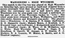 1877–78 FA Cup 2nd round, High Wycombe 0–9 Wanderers, Bucks Herald, 22 December 1877