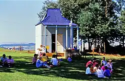 The first South African Hindu temple was built in 1869.[29][30] As the "free" Hindu community prospered, more temples were built in Durban, Pietermaritzburg, Port Elizabeth, Johannesburg and Pretoria. However, given the Hindus in South Africa came from different regions of India and spoke different languages, the temples and social life among Hindus remained diverse and fragmented. As apartheid-type discriminatory laws against colored and black people began to catch the imagination of some European settlers in South Africa, a few regional governments banned Hindus from purchasing land or building new temples in 1902.[8] Additional and more severe restrictions were placed against Hindus in South Africa during the Apartheid era, through 1994.[9]