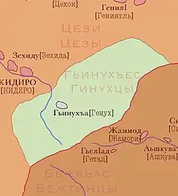 10. ^ a b Бокарёв, Евгений Алексеевич (1967). "Гинухский язык". Языки народов СССР: в 5-ти томах. Иберийско-кавказские языки. Том 4 (in Russian). Москва: Наука. p. 436.