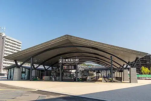 Hiroden-miyajima-guchi Station (広電宮島口駅, Hiroden Miyajimaguchi-eki) is a terminal station on the Hiroden Miyajima Line located in Miyajima-guchi, Hatsukaichi, Hiroshima, Japan.