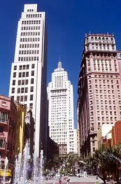 Among the initial measures of the urban requalification policy in the central area of the city was the transfer of the City Hall headquarters, which until then had been located inside Ibirapuera Park, to the Palácio das Indústrias.[8] Ten years later, it was moved back to the corner of Líbero Badaró Street and Viaduto do Chá, where it is today. The Largo São Bento and the Municipal Theatre were also renovated and remodeled, and the traffic lanes in the Anhangabaú Valley were filled in, where an exclusive area was set up for pedestrians to use as a square.[4]