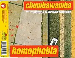 "Homophobia" is a song by English rock band Chumbawamba from their sixth studio album Anarchy (1994). A remixed version of the song featuring the Sisters of Perpetual Indulgence, titled the "Sisters Mix" was released as the third single from the album in 1994. Concerning the topic of modern homophobia, the song remained a regular part of Chumbawamba's live set from its initial release in 1994 up to the band's retirement in 2012. Live recordings of the song are featured on Chumbawamba's two live albums Showbusiness! and Get On with It.