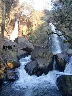 The Horseshoe Falls of South Africa are located 4 km off the Old Lydenburg Road along the Sabie River in Mpumalanga. These unusual falls, although not very high, are horseshoe shaped and have been declared a national monument. A short walk through an attractive landscape brings the visitor to the cascade-type falls. Here one also has the opportunity to spot some of the local birdlife or other wildlife. Although it is easy to navigate to, a small fee is charged to get into the park where this beautiful attraction may be enjoyed.[1] Horseshoe Falls is also a popular venue for trout fishing.
