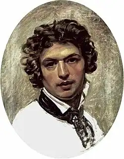 After graduating from the Imperial Academy of Arts in 1821 and receiving a large gold medal, Karl Bryullov went abroad in 1822. He was accompanied by his brother, the architect Alexander Bryullov. As scholars of the Imperial Society for the Encouragement of the Arts, the brothers first visited Germany. In 1823 they arrived in Italy and settled in Rome.[11][12]