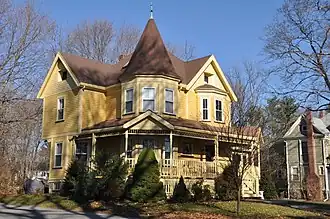 77 Howard Street in Reading, Massachusetts is an excellent example of a well preserved Queen Anne Victorian house. It was built in the 1890s, during the town's growth as a railroad suburb of Boston. It was listed on the National Register of Historic Places in 1984.[1]