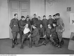 He was wounded-in-action in the left leg, in France, on 22 April 1917.[53] He was hospitalized for a month, released, and, then, re-admitted with a poisoned left leg five months later. He returned to active duty with the Second Field Ambulance in mid-December 1917, and continued to serve with them until the end of the war.