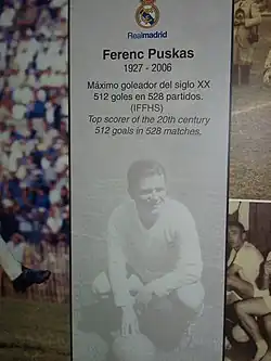 Hungary has a respectable football history, having won three Olympic titles, finishing runners-up in the 1938 and 1954 World Cups, and third in the 1964 European Championship. Hungary revolutionized the sport in the 1950s, laying the tactical fundamentals of Total Football and dominating international football with the remarkable Golden Team which included legend Ferenc Puskás, one of the top goalscorers of the 20th century,[3][4][5] to whom FIFA dedicated the Puskás Award, given annually to the player who scored the "most beautiful" goal of the calendar year.[6] The side of that era has the all-time highest Football Elo Ranking in the world, with 2230 in 1954, and one of the longest undefeated runs in football history, remaining unbeaten in 31 games, spanning over four years including the much heralded Match of the Century.