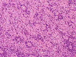 The histopathology of idiopathic orbital inflammation is described as nondiagnostic and diverse.[8] It includes diverse polymorphous infiltrate, atypical granulomatous inflammation, tissue eosinophilia, and infiltrative sclerosis[7][8][13][14][15][16] Although several classification schemes have been postulated, none have been definitively accepted due to the absence of distinct differences among the histopathological types as to the signs, symptoms, clinical course, and outcome.[8]