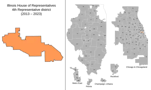 1. ^ a b "STATE LEGISLATIVE DISTRICT REFERENCE MAP (2022): Illinois - State House District 4" (PDF). United States Census Bureau. October 12, 2022. Retrieved January 24, 2023.