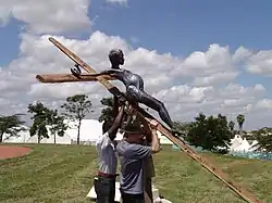 In 2007, Jens Galschiøt brought two statues of the crucified teenager to the World Social Forum in Nairobi. In order to avoid unwanted controversy, these statues were produced clothed.