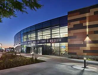 The Bluegrass Music Hall of Fame & Museum is a bluegrass music museum in Owensboro, Kentucky, United States. The museum has interactive exhibits, posters, costumes, live instrument demonstrations, and International Bluegrass Music Association's Hall of Fame. The museum has 64,000 square feet of exhibits, offices, and venues on three floors. As a non-profit group, the Bluegrass Music Hall of Fame & Museum has raised funds with the help of famous bluegrass musicians such as Ricky Skaggs and Ralph Stanley.[1]