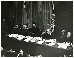 3. ^ on 29 June 1945 Archived 10 December 2004 at the Wayback Machine (8. Report of Robert Jackson, United States Representative to the International Conference on Military Trials, London, 1945 (Washington, DC: US State Dept., 1949), pp. 104–106, 303.; Whitney R. Harris, Tyranny on Trial: The Evidence at Nuremberg (Dallas: S.M.U. Press, 1954), pp. 16–17.)