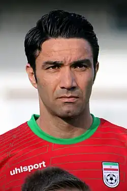 Iran qualified for the 2015 AFC Asian Cup as group winners where Team Melli were the highest ranked seed.[43] Iran faced Bahrain, Qatar and the UAE in Group C. With the second highest number of fans in the tournament after hosts Australia, the Iranians defeated Bahrain 2–0 with limited preparations.[44][45] A defensive-minded Iran then defeated Qatar 1–0 thanks to a Sardar Azmoun goal before defeating UAE by the same scoreline to reach the top of their group.[46][47] In the quarter-finals Iran faced Iraq who they had beaten weeks prior in a friendly match. Having received a controversial red card in the first half, Iran competed with ten men, managing to score goals late in extra time to draw the match 3–3. In the ensuing penalty shootout, Iran lost 7–6.[48][49]