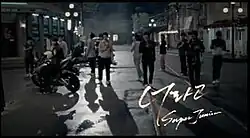 The music video was directed by Cho Soo-hyun and filmed in a studio in Ilsan, Gyeonggi Province, South Korea in late April 2009.[5] It premiered on the evening of May 12, 2009 on Cyworld with a positive reception. The music video was originally planned to be released on the same day as the repackaged album release, but because an unfinished version of it was illegally leaked on the morning of May 12, SM Entertainment decided to push forward the release time to 7 P.M. of that same day.[6] There are slight differences in both versions. In the leaked unedited version, there are more scenes of Han Geng whispering the phrase "it's you" (너라고, Neorago) in Korean, while in the official release, those scenes are replaced with the Super Junior members assembling to their stools. Certain scenes are also shot at different angles, and more special effects are added into the dancing scenes.