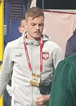 In November 2022, he was selected in Serbia's squad for the 2022 FIFA World Cup in Qatar.[26] He played in a group stage match against Brazil.[27] Serbia finished fourth in the group.[28]
