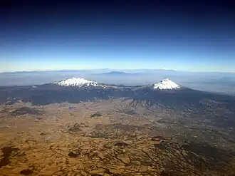 Aerial view of Iztaccíhuatl (left) and Popocatépetl