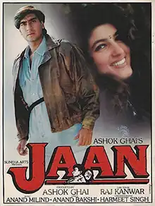 Jaan (transl.Life) is a 1996 Hindi-language action drama film directed by Raj Kanwar and produced by Ashok Ghai. The film stars Ajay Devgn, with Twinkle Khanna, Amrish Puri, Shakti Kapoor and Suresh Oberoi. It was theatrically released in United States on 31 March 1996 and India as well as other countries on 17 May 1996. The film's soundtrack was composed by Anand–Milind. Upon release, it was commercially successful, grossing ₹17.20 crore (US$2.0 million) worldwide. The film was declared a "super hit" at the box office.