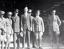 Rodríguez Díaz next to American colonel Charles Lindbergh Guatemalan aviation pioneers Ricardo Rodas and Miguel García Granados Solís.