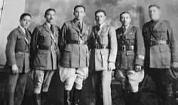 Aviation pioneers in Guatemala: Infantry Colonels Manuel Samayoa, Ricardo Rodas, Miguel García Granados Solís, Jacinto Rodríguez Diaz, Oscar Morales López and Perfecto Flores.