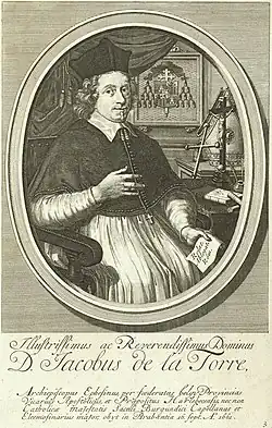 Jacobus de la Torre (1608 – 16 September 1661) served as apostolic vicar of the Apostolic Vicariate of Batavia (1651-1661) and titular archbishop of Ephesus (1647-1661).