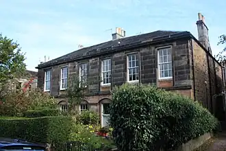 James Hutchison Stirling was born in Glasgow, Scotland, the fifth son (and the youngest of six children) of William Stirling (died 14 March 1851)[4] and Elizabeth Christie (d. 1828).[5][6] William was a wealthy textile manufacturer who was a partner in the Glasgow firm of James Hutchison & Co., which manufactured muslin (lightweight cotton cloth in a plain weave, used for making sheets and for a variety of other purposes).[7][8] William was known for his deeply-held religious views, many of which strongly influenced his son James.