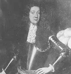 Johnstone died in Italy in February 1730 aged 42, and his body was returned from Italy and buried in Westminster Abbey. His attempt to cut out his brothers was only partly successful, for only his Scottish lands and his art collection passed to Henrietta. His peerages, which could not be lawfully alienated in the way he intended, passed to his half-brother George who succeeded as 4th Earl of Annandale and Hartfell and 3rd Marquess of Annandale.[1] Johnstone's portrait hangs today at Hopetoun House near Edinburgh