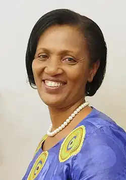 Jeanne d'Arc Gakuba is a Rwandan politician of the Rwandan Patriotic Front who served as the Vice-President for Finance and Administration during the Second legislature of the Rwandan Senate.[1][2] Gakuba holds a Bachelor's degree in Geography[1] and worked as a high school teacher.[3] She decided to run for office after shadowing a councilman of Tucson, Arizona while taking part in a young leaders program run by the US Department of State.[3] She was elected vice mayor of Kigali in 2001 and served in this position for 10 years.[4] She successfully ran for Kigali's senate seat in 2011, winning 80.78% of the vote.[1] She left office in 2019.[5]