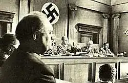 In wartime Berlin, a factory foreman, Otto Quangel and his wife, Anna learn that their only son, Paul, has been killed in action in France.[19] In their grief, the couple decide to take action against the Nazi regime. They create their own form of resistance, writing postcards urging people to resist Hitler and the Nazis and quietly distributing the postcards around Berlin.[1] Various people enter the picture, showing the fear and distrust of the times. People, such as the actor Harteisen, find the cards and race to turn them in,[19] lest they be found with them and come under suspicion. The police and the Gestapo are baffled for over a year, but finally find the source of the cards. The Volksgerichtshof sentences the Quangels to death.[1]