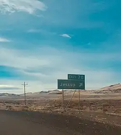 Exit sign off Interstate 80 showing Jessup.