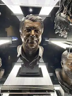 Johnson was not included on the Dallas Cowboys "Ring of Honor" for many years. Johnson and Jones had appeared to patch up their relationship, such as appearing together on the 25th anniversary of the Cowboys' Super Bowl XXVII win, and Johnson congratulating Jones on his Hall of Fame induction in 2017.[4] When asked in the summer of 2014 why Johnson was not in the Ring of Honor despite his two Super Bowl victories as coach of the Cowboys, Jones stated: "Disloyalty ... I couldn't handle the disloyalty."[5] The Cowboys Ring of Honor has been viewed as the "gatekeeper to the Pro Football Hall of Fame" for Dallas players, coaches, and executives;[6] despite this snub, it was announced in 2020 that Johnson would be inducted into the Pro Football Hall of Fame.