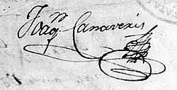 Joaquín Canaveris Esparza died around 1833 in Buenos Aires. His great granddaughter, María Elena Canavery, was married to Cornelio Casablanca, a manager of the Banco Español del Río de la Plata.[24] Several of his descendants were married to his relatives, like Rebeca Rodríguez Canavery, who was married to Ricardo Patricio Bayá y Canaveris, a grandson of Juan Manuel Canaveris y Denis.[25] His great granddaughter Carmen Canavery Martínez, was married to Saturnino Canaveri Segrestán, son of his nephew Francisco Canaveris Pelliza.[26]
