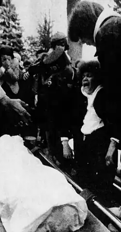 Eleven MOVE members, including John Africa, five other adults and five children died in the resulting fire. Although the members were all huddled in the basement with access to a back alley, the alley was under police gunfire. The lone surviving woman described bullets flying all around during her first escape attempt, and the lone surviving child described hearing the sound of automatic gunfire when they tried to flee from the fire. Police officers at the scene denied these claims.[8] Only Ramona and Birdie Africa survived, though both suffered severe burns. Birdie was released but Ramona was convicted and sentenced to serve the maximum sentence of 7 years in prison. She served the full time.[9] Despite the fact that the Philadelphia Police and Fire Departments were found guilty of negligence by the Philadelphia Special Investigation Commission (MOVE), no criminal charges were ever filed against any of the perpetrators of the bombing, arson, and resulting deaths.