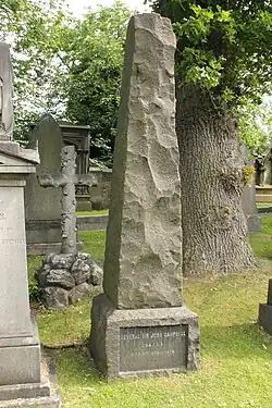 His wife Elizabeth died in 1883 and was buried next to him.[3]