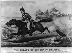 After the failed attempt, Champe served in the British Army for many months before finding a way to escape back to the Continental Army. Upon rejoining the Americans, Champe voiced a desire to continue his service fighting the British, but Lee dissuaded him from it — pointing out that if captured, he could now be hanged as a spy.[2] Nevertheless, Lee believed that Champe had acquitted himself well and had him discharged honorably from the Continental Army.