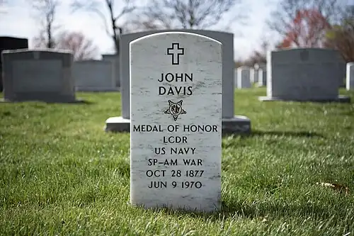 1. ^ a b "Davis, John". Medal of Honor recipients, War With Spain. United States Army Center of Military History. Archived from the original on April 23, 2009. Retrieved July 3, 2010.