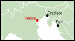 The location of the main cities in the Uskok War.