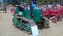 Production of ploughing engines ceased in 1935.[2] The last Fowler steam driven vehicle was a steam roller produced in 1937.[3] The main products produced by Fowler during the 1930s were their range of tracked tractors, the FD2, FD3 and FD4, powered by Fowler-Sanders diesel engines of 2, 3, and 4 cylinders. They also produced the Fowler Gyrotiller from 1927 - this was a large tracked vehicle 34 foot long and 10 ft 6in wide powered initially by a 225 hp Ricardo petrol engine, later by a 170 hp MAN diesel. It was claimed it could convert virgin territory to seed-bed in one pass and at a rate of an acre per hour.[4] Later versions of the gyrotiller were produced as attachments to the standard Fowler diesel crawler range with Fowler-Sanders engines of 30, 40 and 80 hp. A total of 88 gyrotillers were produced.[5]