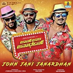 John Jani Janardhan is a 2016 Kannada comedy drama film directed by Guru Deshpande.[2] It features Ajay Rao, Yogesh and Krishna in the lead roles, while the debutant Kamna Ranawat feature as the female lead.[3] It also features actress Malashri in an important role. The film is the official remake of the successful Malayalam film Amar Akbar Anthony (2015) which was directed by Nadirshah.[4] The film's musical score and songs are by Arjun Janya.